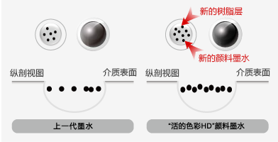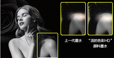 “活的色彩HD”颜料墨水中照片黑色墨水的颜料颗粒数量比前一代增加50%,获得更大的黑色色彩动态范围和更好的灰阶过渡,不仅还原出更深沉的黑色,更多深色区域内的细节层次也得以还原。