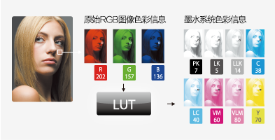 爱普生智能LUT技术利用打印机的宽色域以及小墨滴的优点,以产生更为平滑的、 色阶、避免同色异谱现象并减小颗粒感。